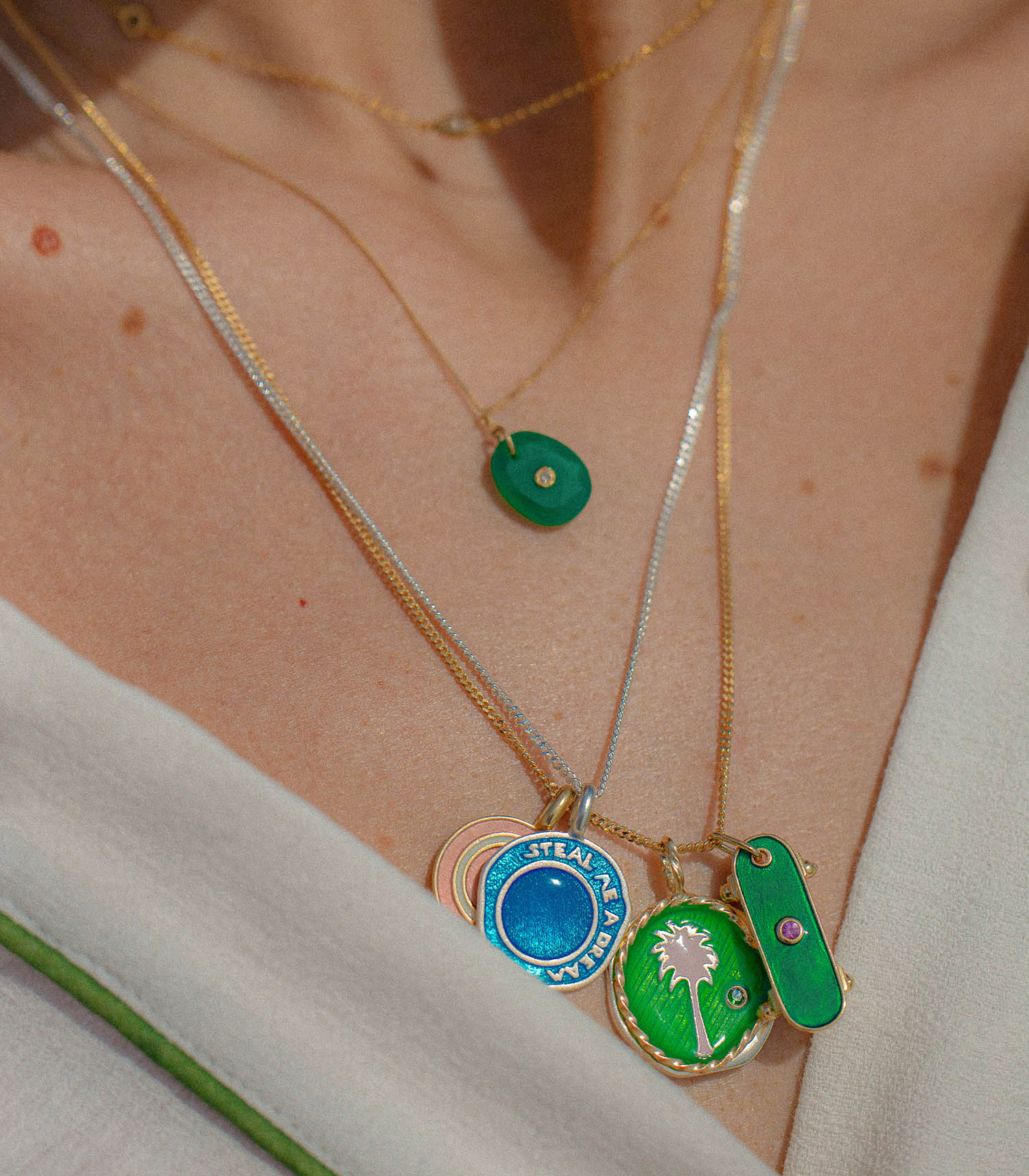Pendentif Hydra de la marque Pascale Monvoisin, une pièce conçue en argent et résine bleue, dotée d'une inscription estivale "steal me a dream". On l'ajoute sur une fine chaîne en argent.