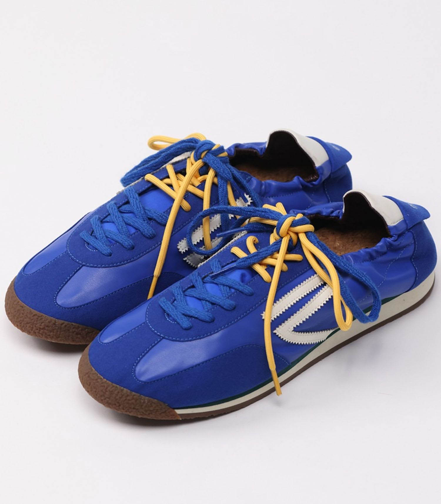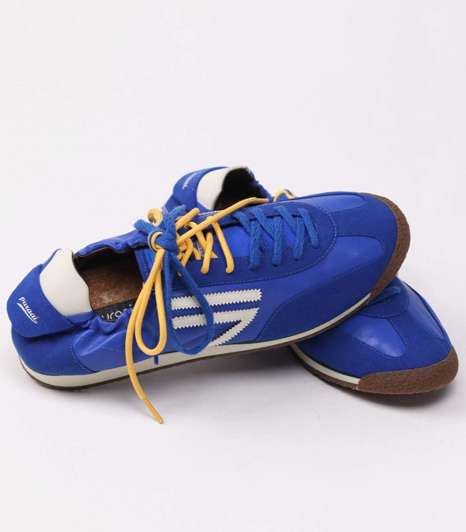 6.02 PANTHER SKYDIVER de la marque Puraai. La Skydiver de Puraai incarne l'audace et la modernité. Confectionnée en cuir vegan et micro-suède bleu électrique, elle est sublimée par un logo et des détails blancs, apportant une touche de sophistication. Sa semelle bicolore chocolat, beurre et vert ajoute une note de contraste, tandis que les lacets électriques bleus et jaunes permettent une personnalisation du look. Fabriquée en Italie selon des procédés écologiques, cette sneaker allie style et engagement éthique.