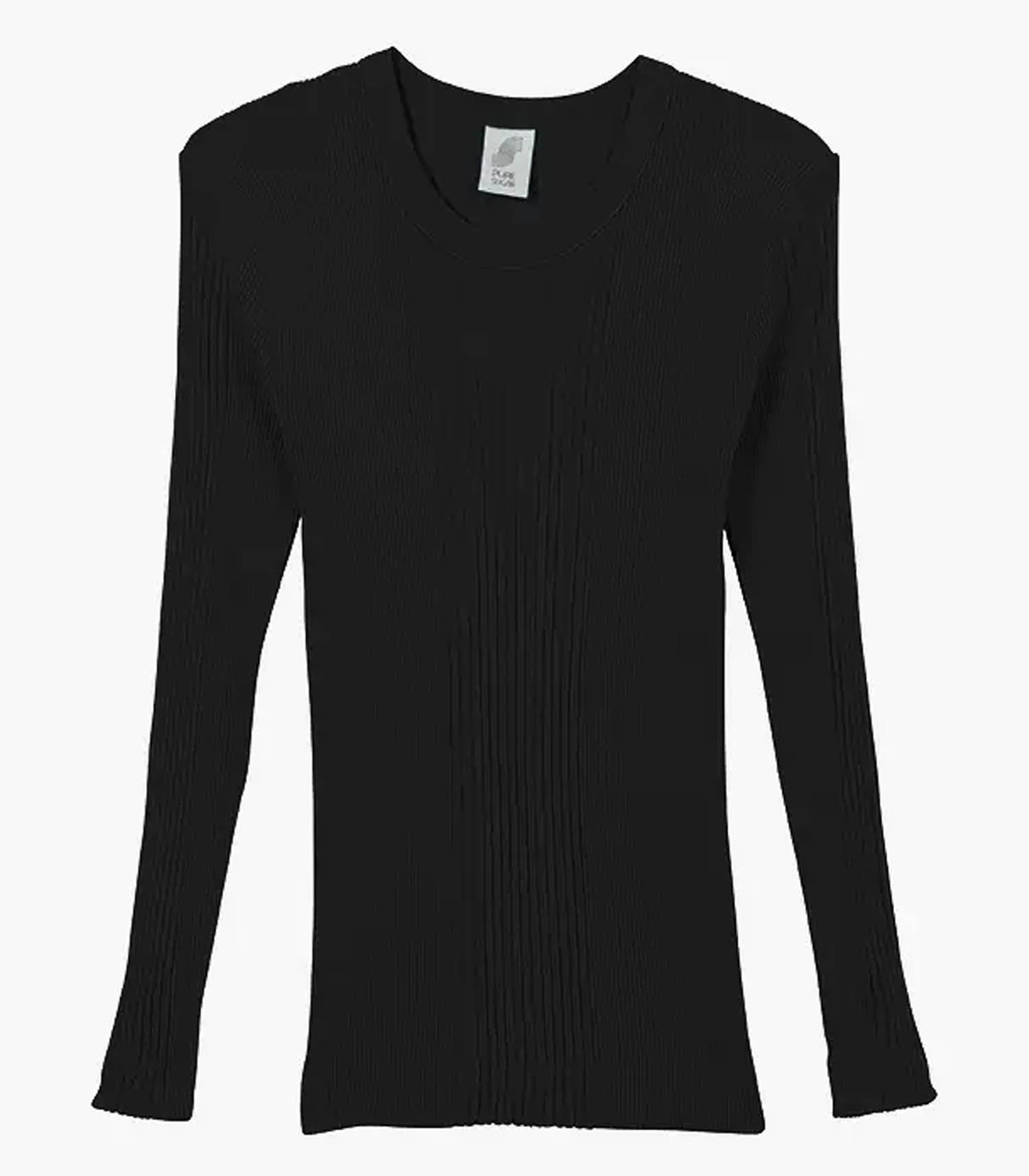 T-shirt Galibier col rond manches longues en maille Richelieu tubulaire, signé Pure Sugar.