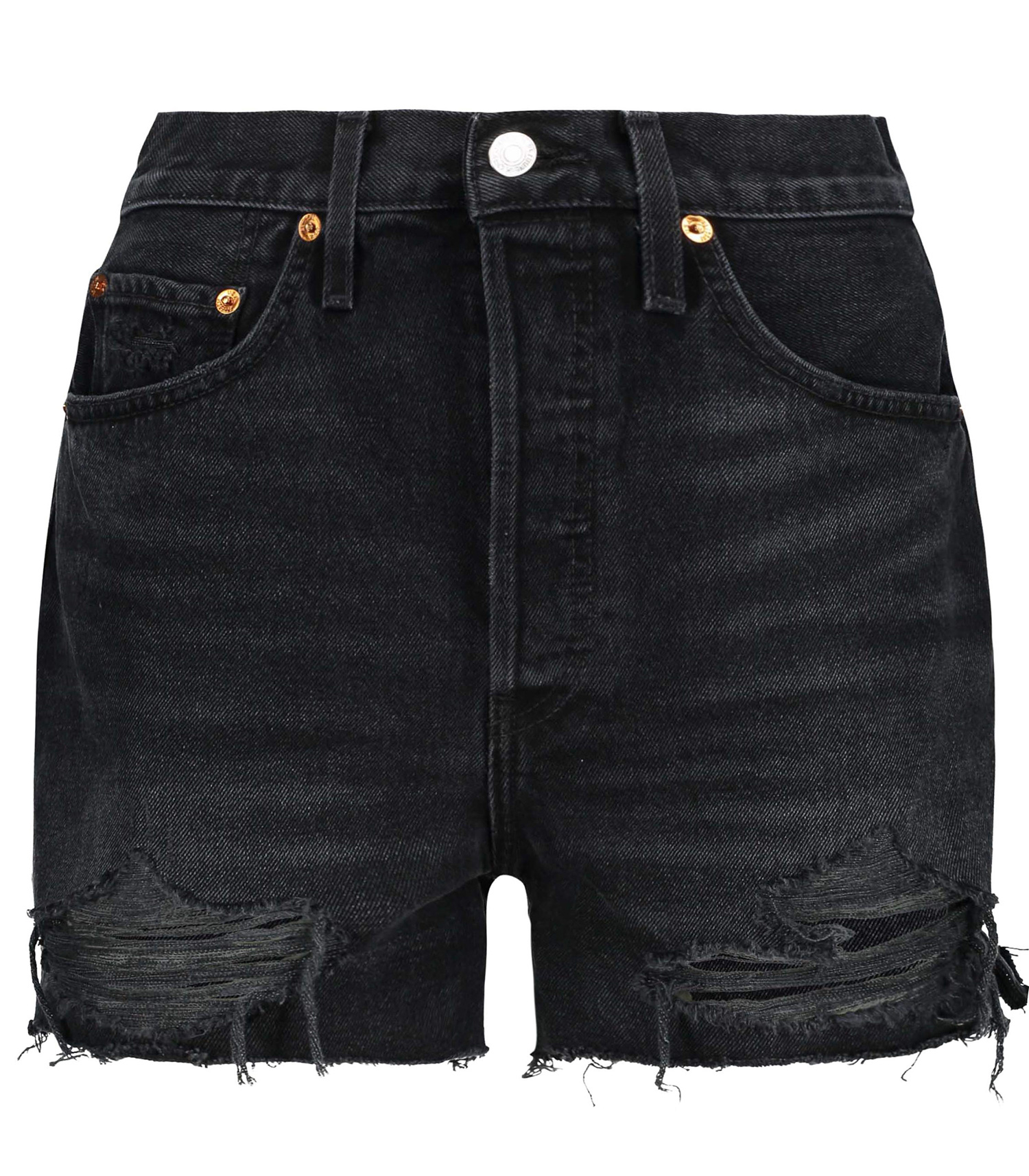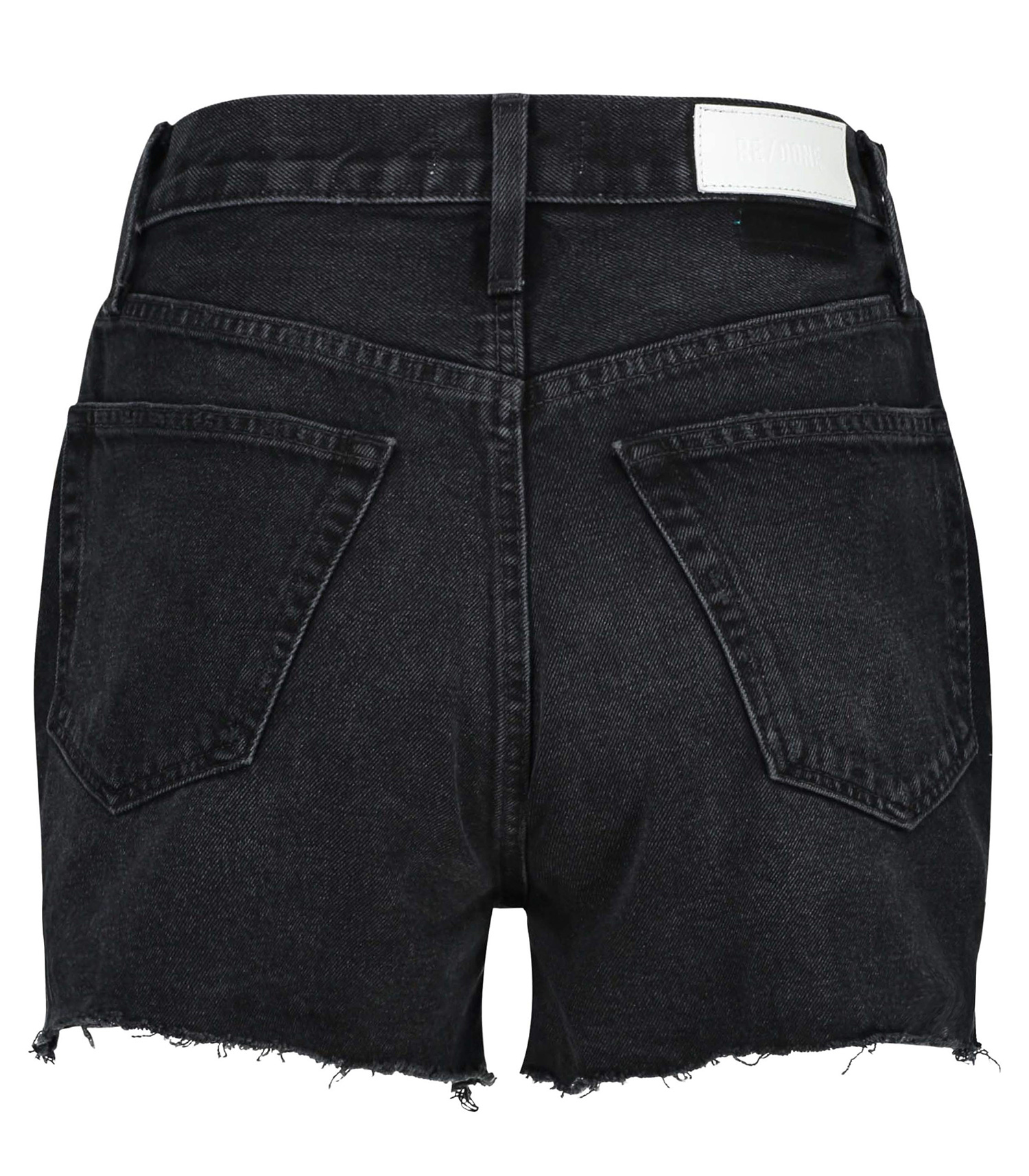 Short en jean 50s Cutoff Destroyed Shadow Black signé RE/DONE, ajusté à la taille avec une jambe légèrement plus large. Très court, il est taille haute pour mettre en valeur la silhouette. Aspect déchiré du denim pour un look destroy.