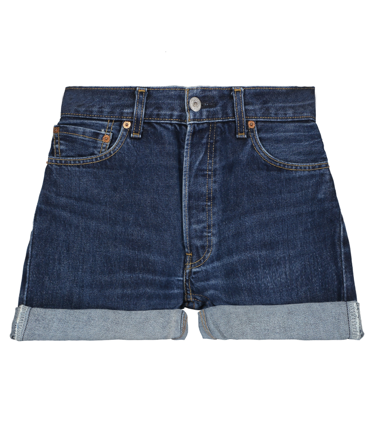 Short en jean Re/ Done "The 90's short", pièce emblématique Levi's des années 90's, ce short taille haute, se distingue par sa finition avec un revers, et par la marque qui donne une seconde vie au denim, dans ses ateliers de Los Angeles. Chaque exemplaire étant unique, les couleurs peuvent varier.
