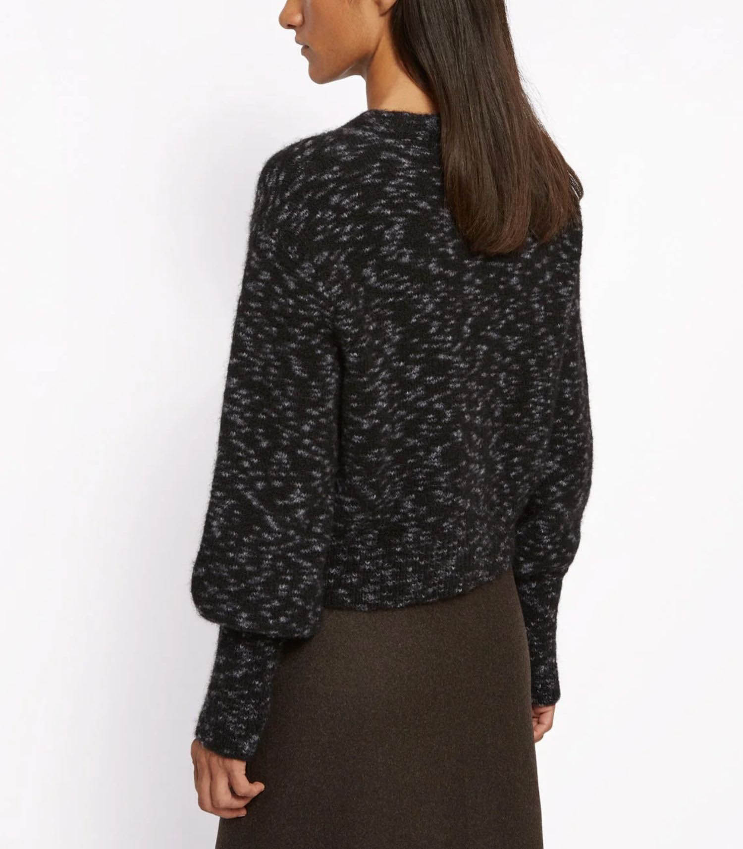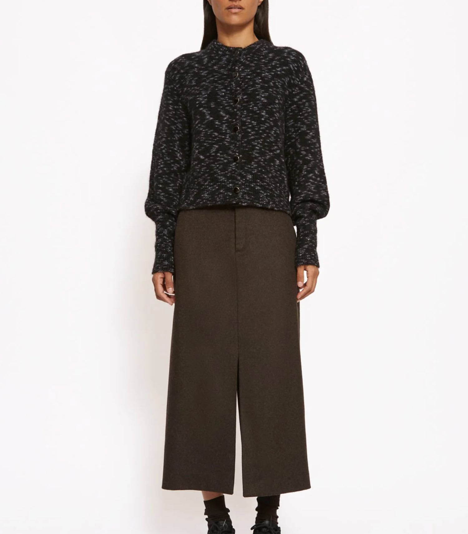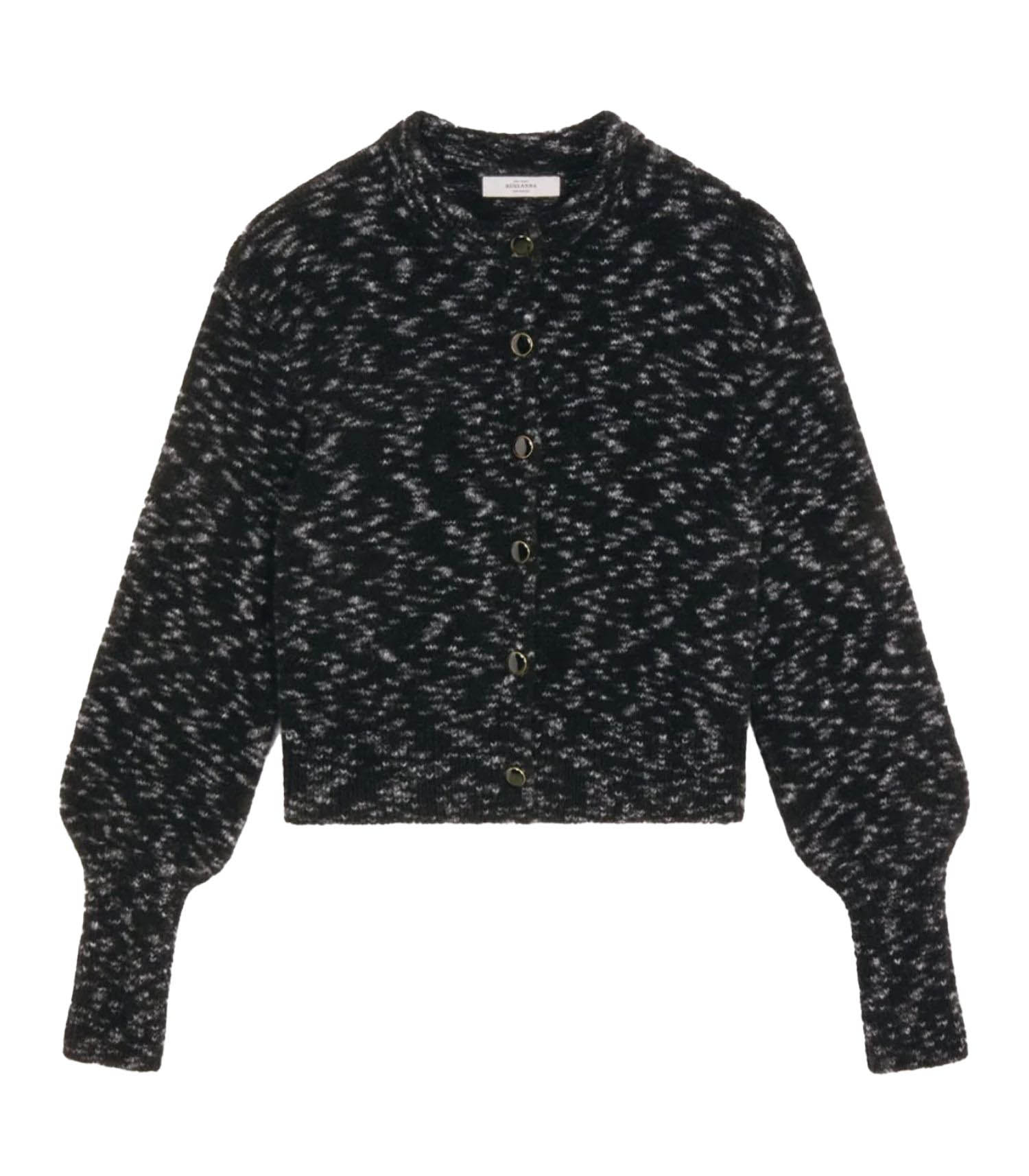 Gilet Bobby de la marque Roseanna. Gilet Bobby Boréal Maille Charcoal : Un gilet court en maille jersey, tricoté en Italie dans un mélange d’alpaga et de laine. Sa coupe cropped et ses manches ballon resserrées aux poignets lui confèrent une silhouette féminine et contemporaine. L’effet "Boréal" évoque la poésie des paysages enneigés, avec une teinte charbon profonde. Ce modèle, confectionné au Portugal, s’associe parfaitement à une jupe midi ou un pantalon taille haute pour un look élégant et structuré.