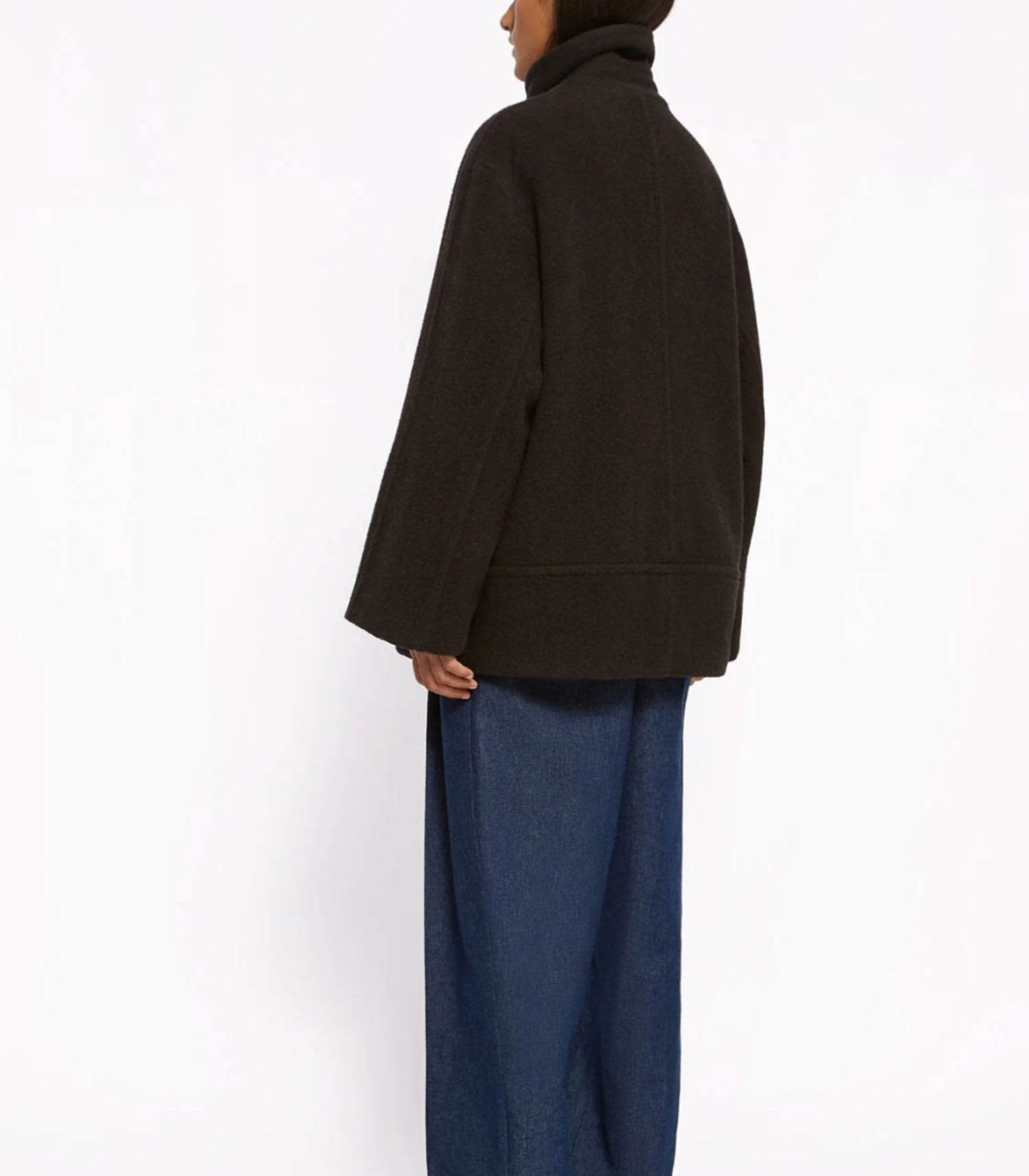 Le manteau Driver Albert revisite le classique intemporel du caban avec une élégance sombre et enveloppante. Teinté d’un chocolat profond, il déploie une aura chaleureuse, dense, presque enveloppante. La coupe droite, courte, souligne les lignes tout en offrant une silhouette affirmée : il tombe juste là où il doit tomber, pour laisser la jambe libre et créer un jeu de proportions facile à associer.