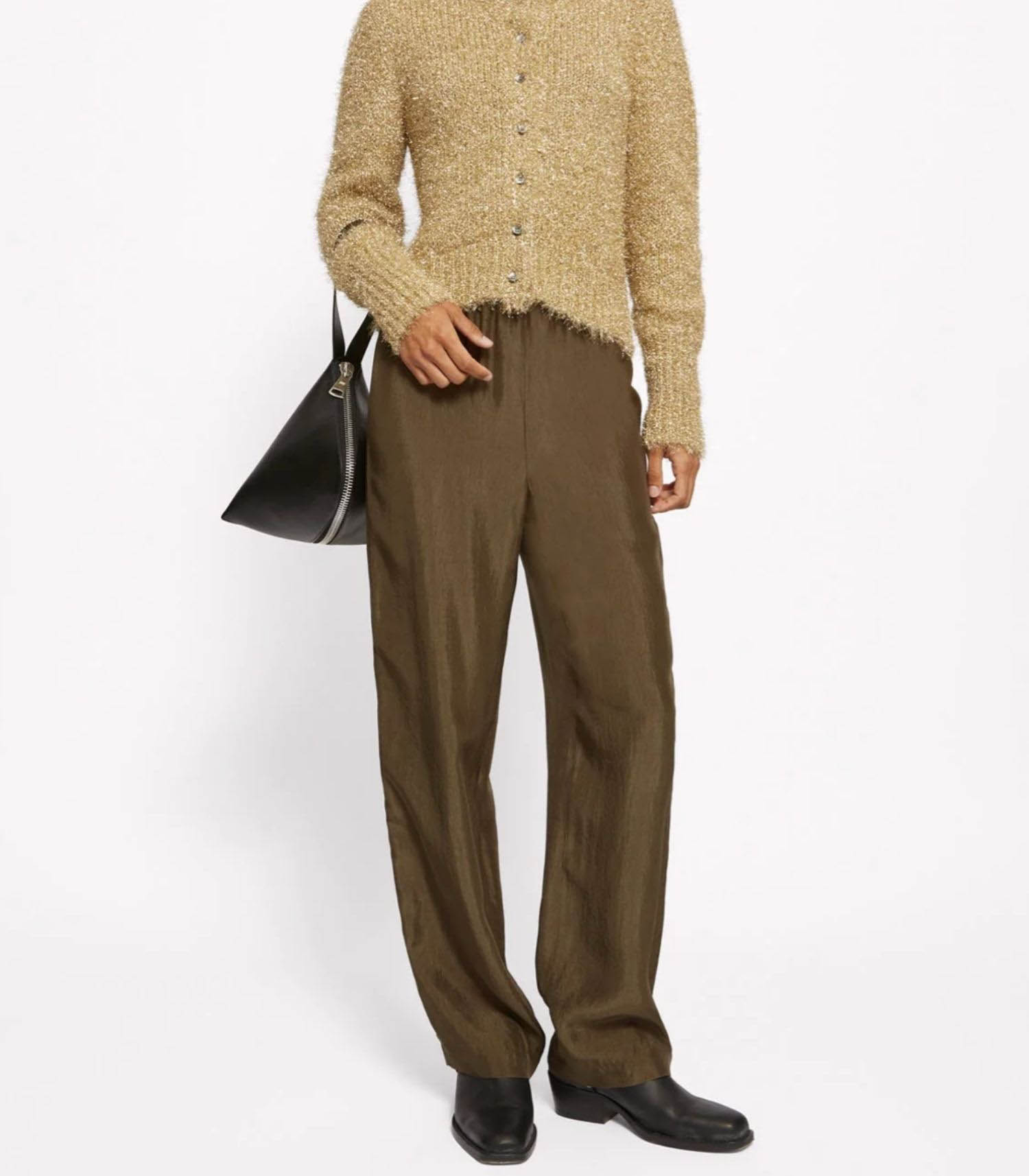 Pantalon Roseanna en satin, modèle KING, couleur Moka.