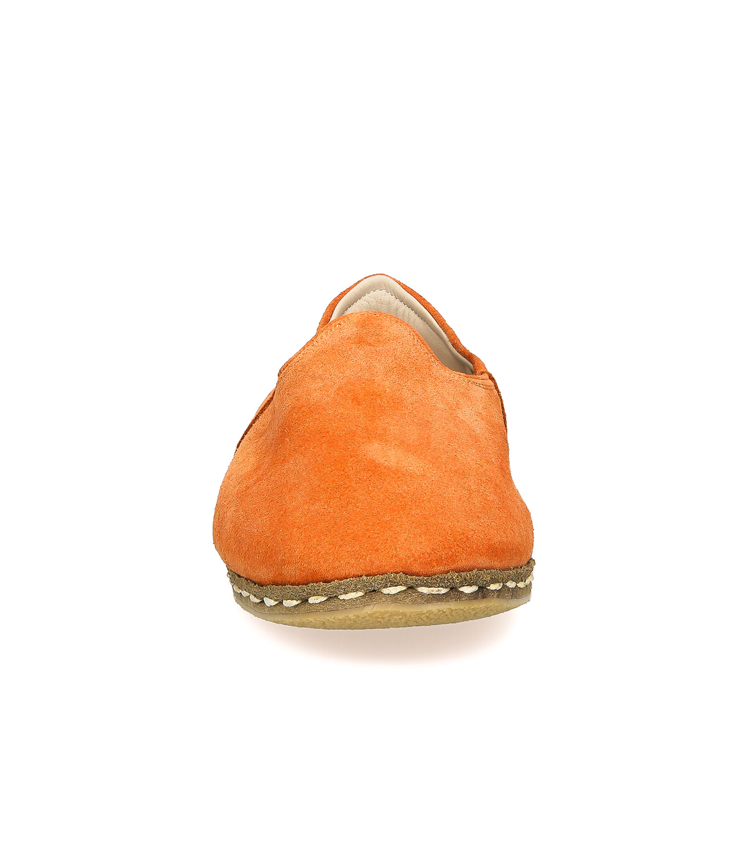 Mocassins Saanas pour homme en cuir suédé, modèle Classique, coloris Mandarine.