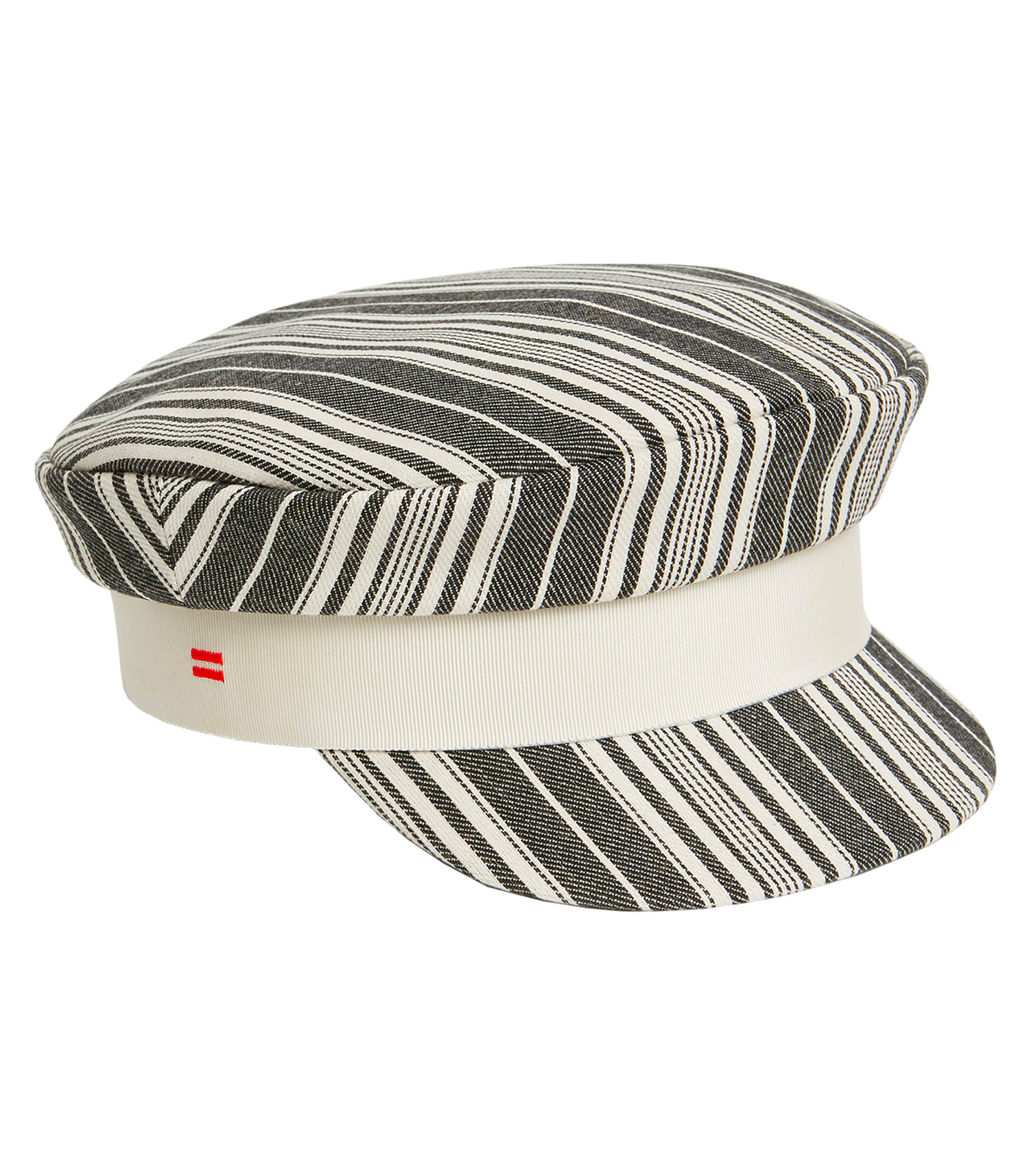 Casquette Lou à rayures blanches et noires de la marque Sauvages Paris.