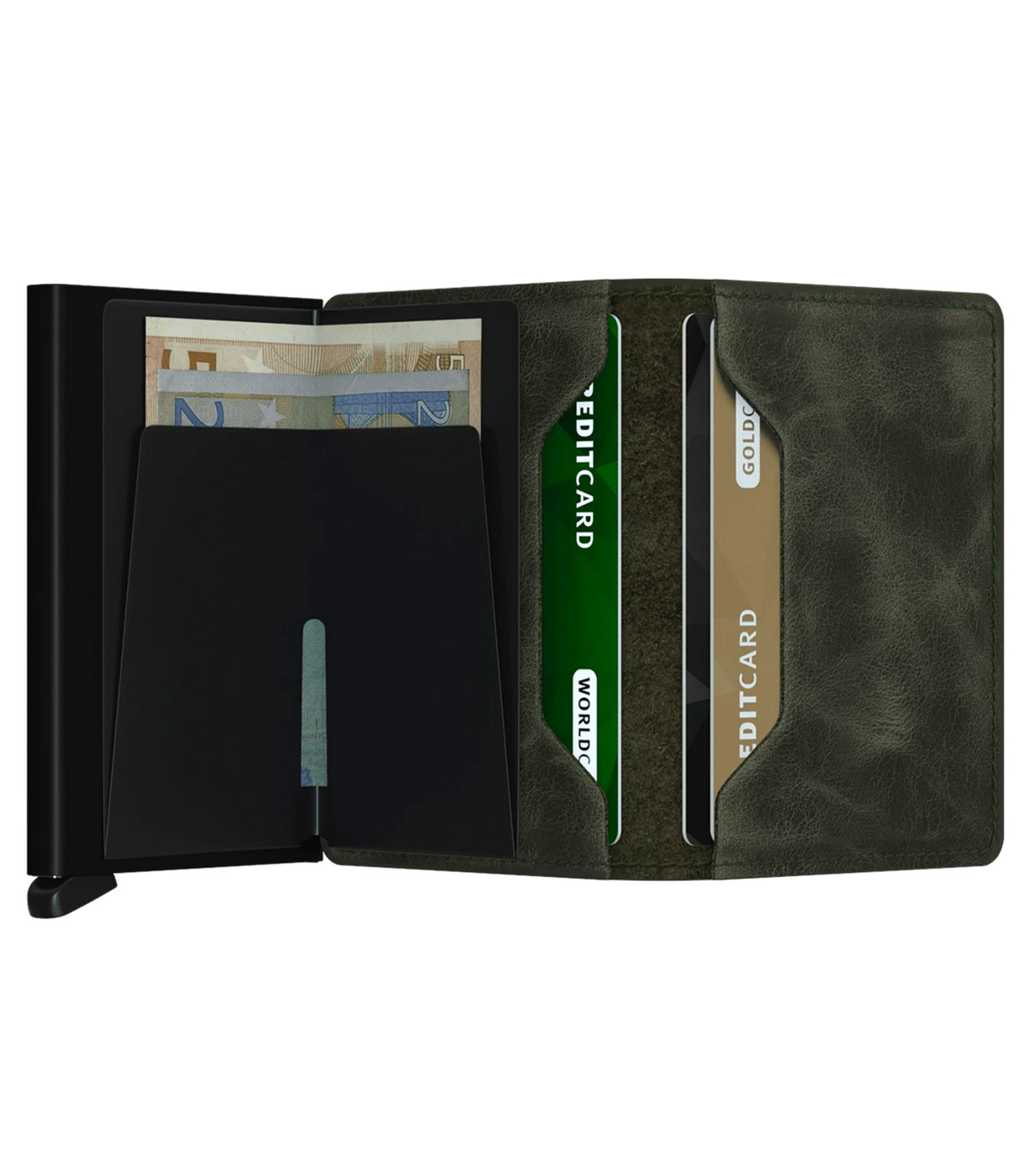 Tout en finesse et très élégant, le Porte-Carte slimwallet Vintage Olive Black est l'une des dernières créations signées Secrid. Son design innovant se caractérise par un mécanisme astucieux qui protège vos cartes et billets du vol, du piratage, de la démagnétisation, des rayures et des plis.