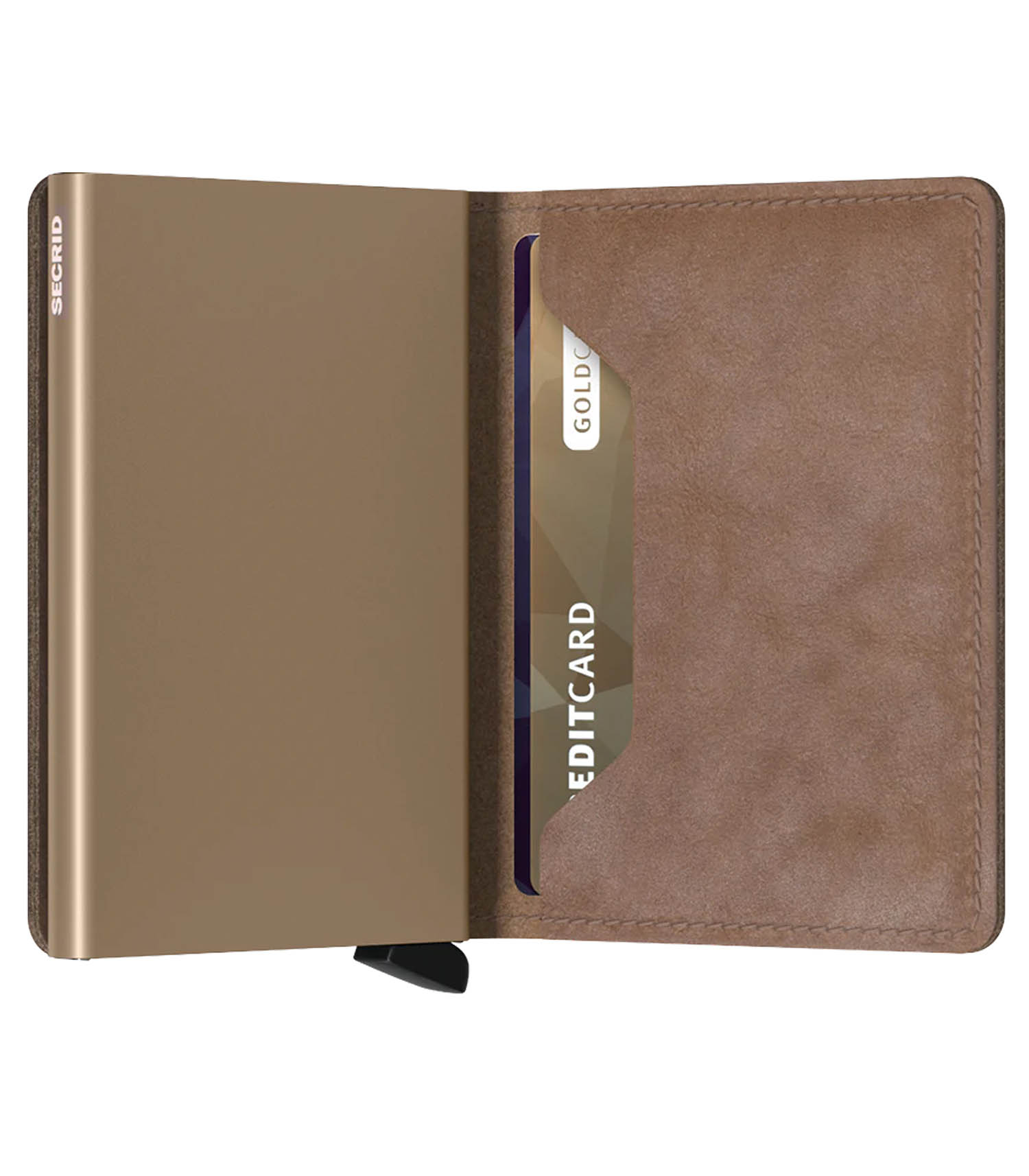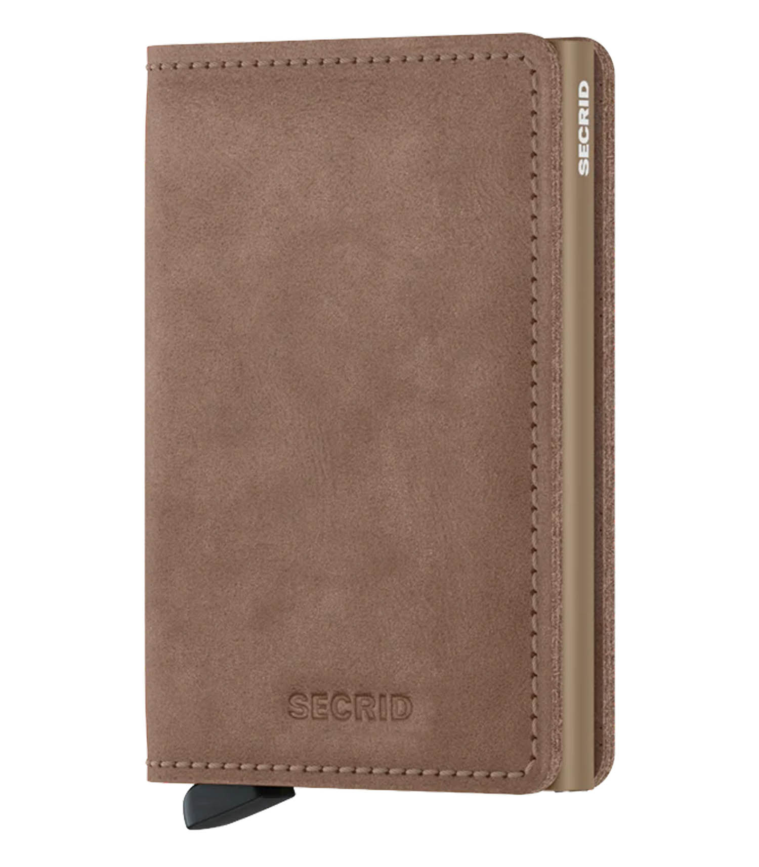 Porte-Carte Slimwallet Vintage Taupe, un joli accessoire de maroquinerie élégant et intemporel avec sa jolie teinte taupe. Compact, il se veut fin pour se glisser facilement dans une poche. L'angle d'ouverture est large pour y glisser toutes vos cartes et billets et pouvoir y accéder facilement en un geste. Technologique Carprotector en aluminium intégrée, pour protéger vos cartes des pliures et des vols de données. Contenance :
