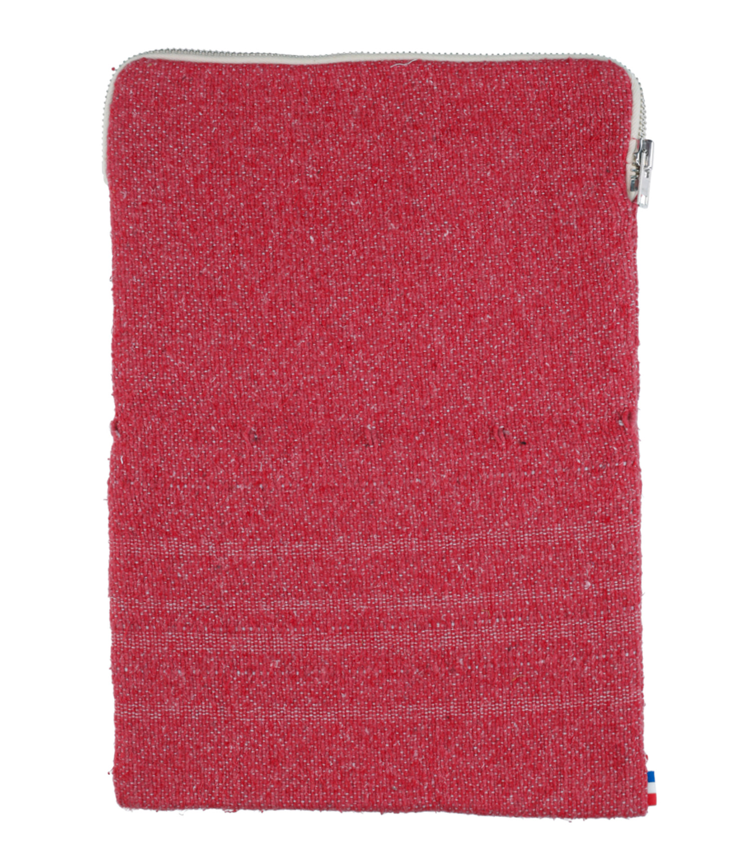 Grande pochette Chili de la marque SoKpsul proposée dans un coloris rouge. Réalisée à partir de serpillière recyclée, les dimensions de cette grande pochette zippée lui permettent d'accueilir un ordinateur portable.