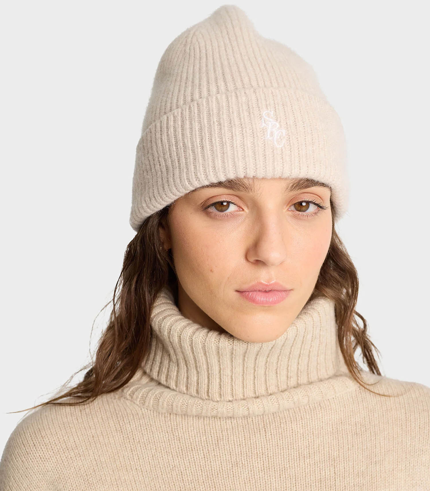 Élégance et douceur se rencontrent avec le bonnet SRC en laine d'angora crème. Une teinte lumineuse et un confort enveloppant pour accompagner vos tenues hivernales avec raffinement.