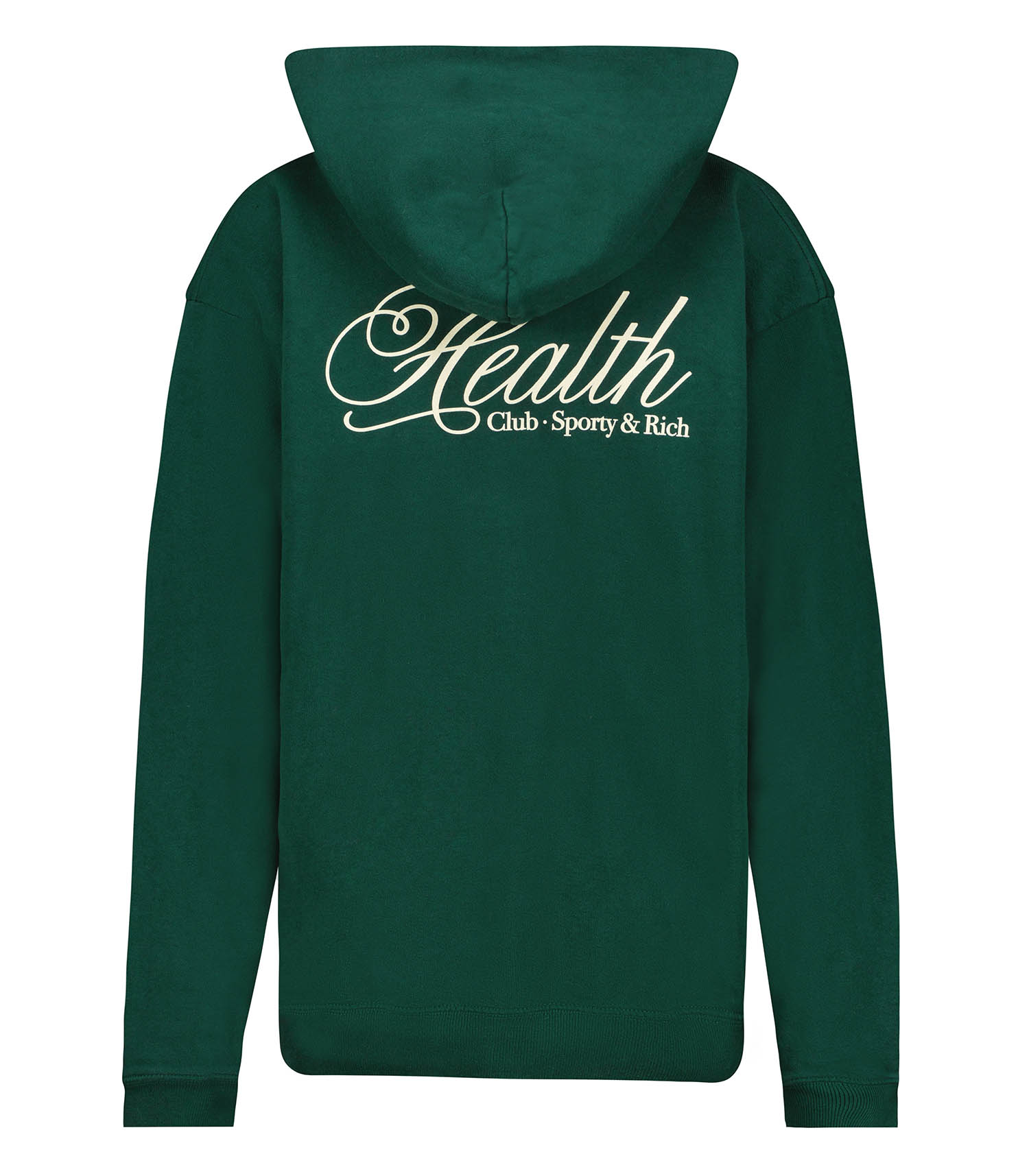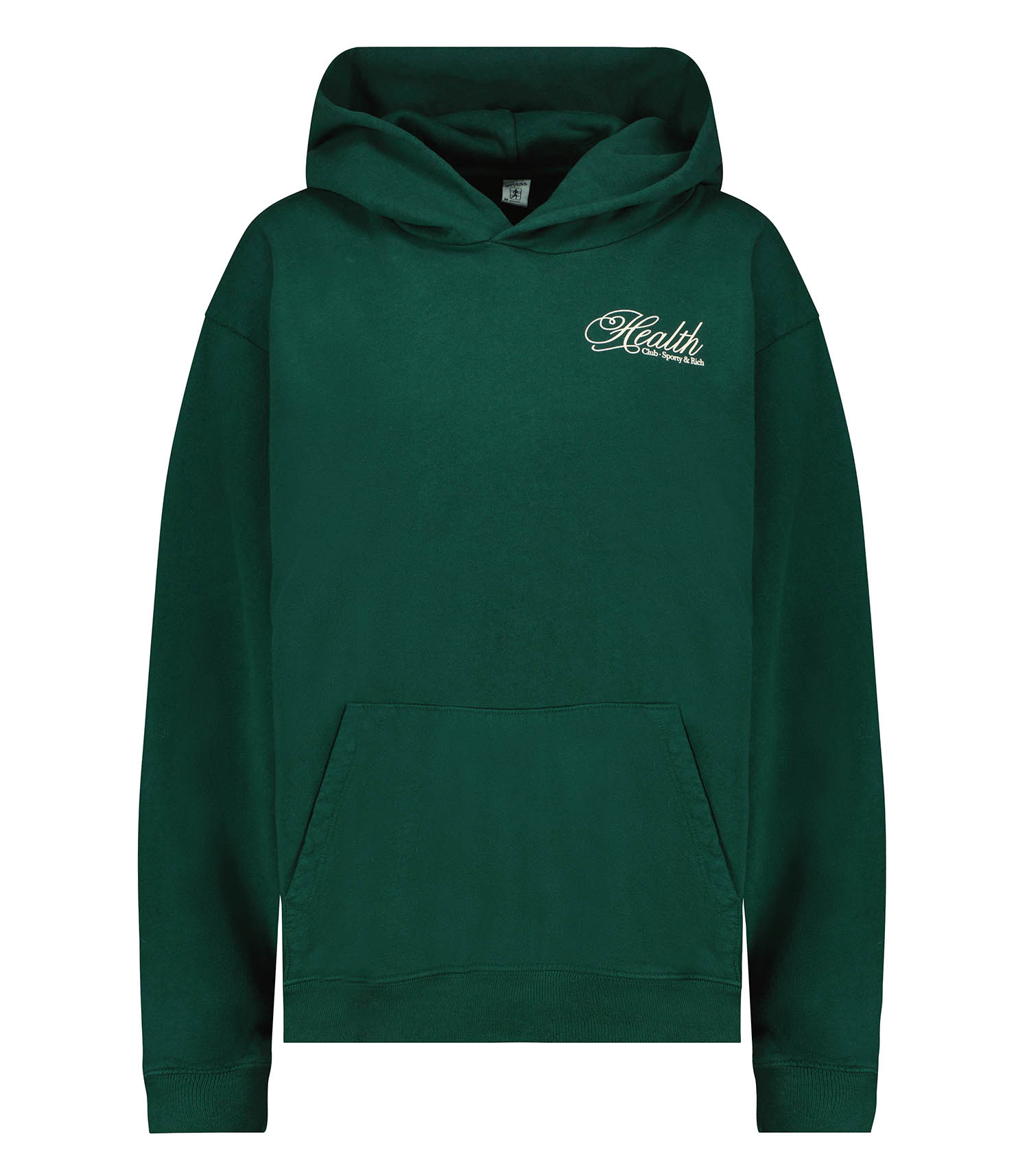 Hoodie Health Script Forest de la marque Sporty & Rich. Ce sweat à capuche vert forêt, à la fois minimaliste et audacieux, apporte une subtile touche de couleur à votre vestiaire. On craque pour son inscription signature dans le dos, qui lui confère une allure unique et une profondeur visuelle. Parfait pour un style décontracté, c'est le must-have confortable et tendance du quotidien.