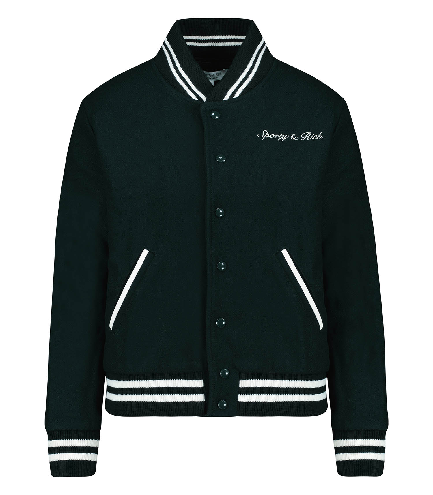 Cette veste incarne l'esprit varsity. Confectionnée en laine vert forêt, cette veste emblématique de la marque Sporty & Rich incarne parfaitement la fusion du style sportif et de l'élégance moderne. Idéale pour adopter la tendance athleisure, elle se marie parfaitement avec une paire de baskets pour un look affirmé et décontracté.