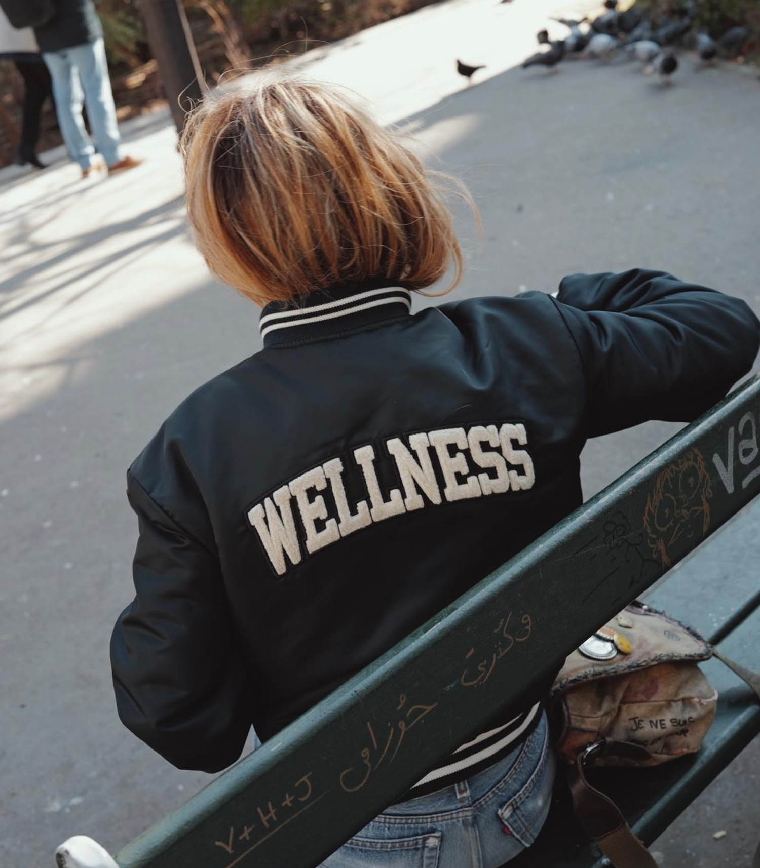 Teddy Wellness Boucle Varsity Navy/White signée Sporty & Rich. Inspirée des blousons d'université vintage, cette veste offre un esprit sportswear qui donne un côté décontracté à tous vos looks.