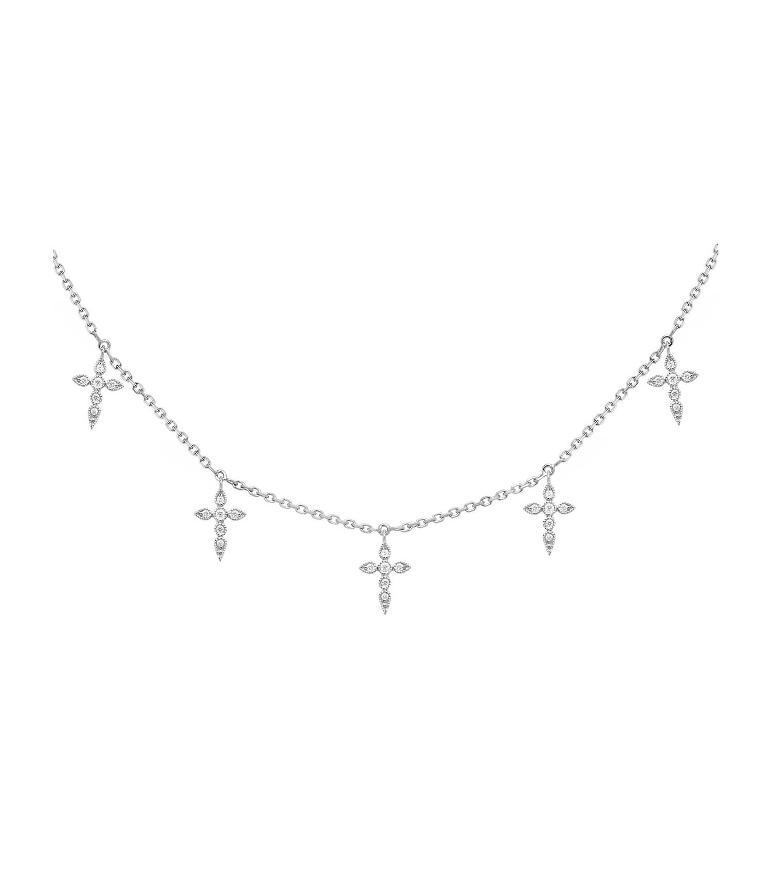 Bien plus qu'un bijou précieux, le collier Céleste Lovely en or blanc de la collection Stone Paris serait aussi porte-bonheur. Cette création artisanale compte sept croix incrustées de diamants lumineux et porteuses de bonne aventure.