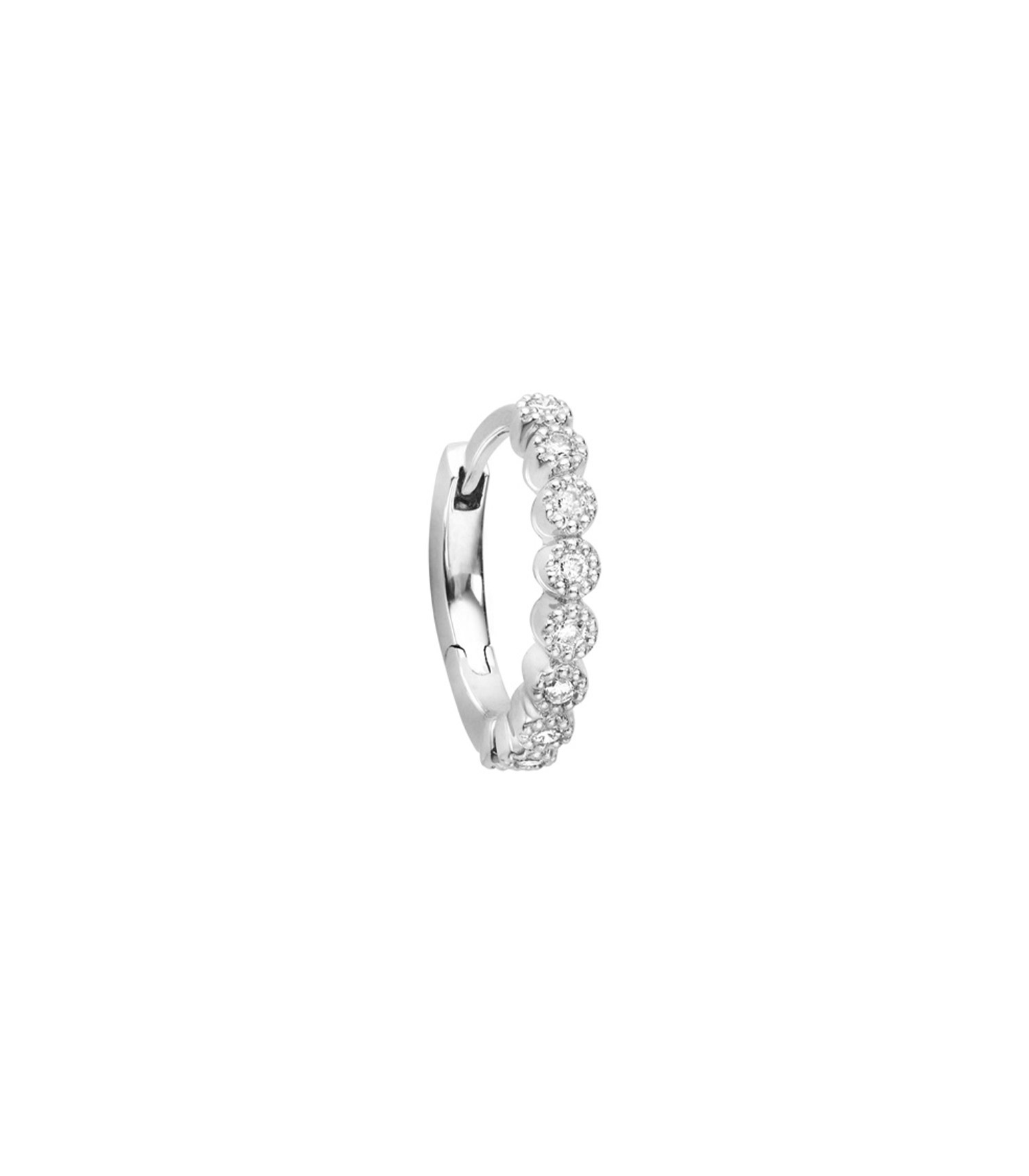 Mini Créole Madame Bovary des collections Stone Paris, entièrement en or blanc et dont le pourtour est agrémenté de petits diamants blancs perlés. Un design façon couronne qui apportera de l'élégance à vos compositions.