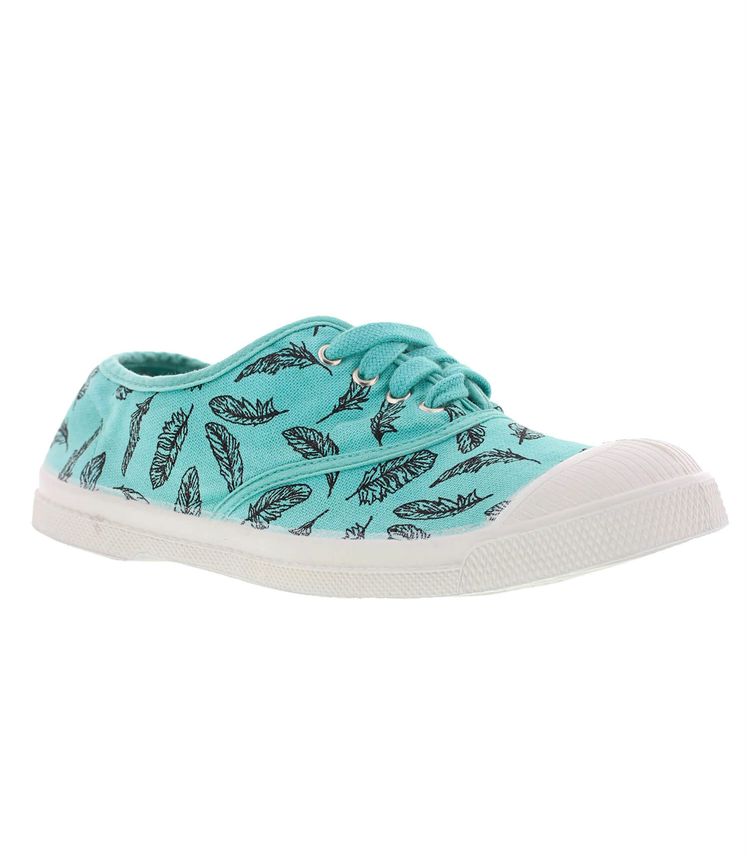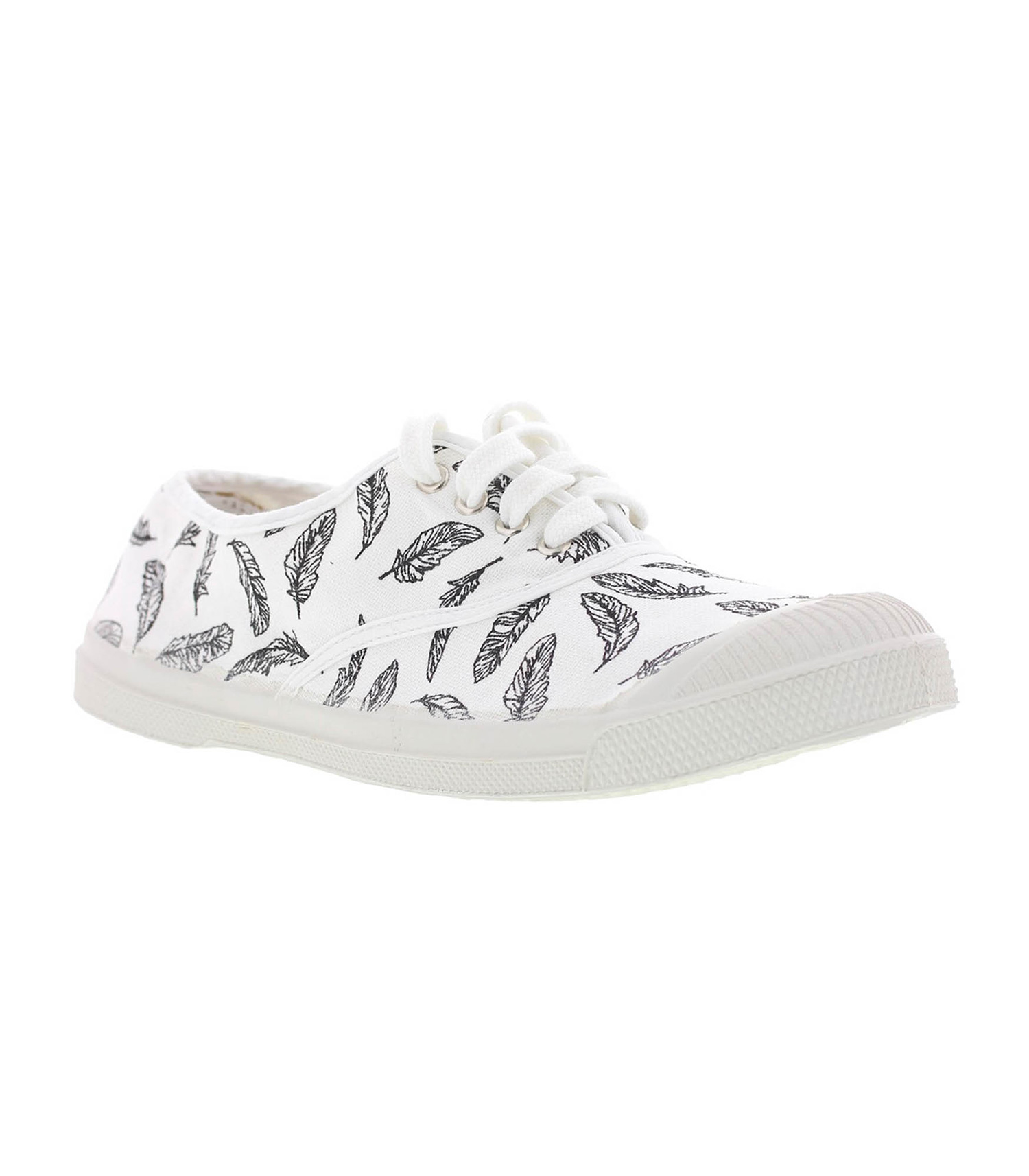 Les tennis à imprimé « Plumes » associent le look décontracté de Bensimon et le raffinement de Swildens. Leur toile en coton est imprimée d’un motif plumes dans l’air du temps, poétique et féminin.