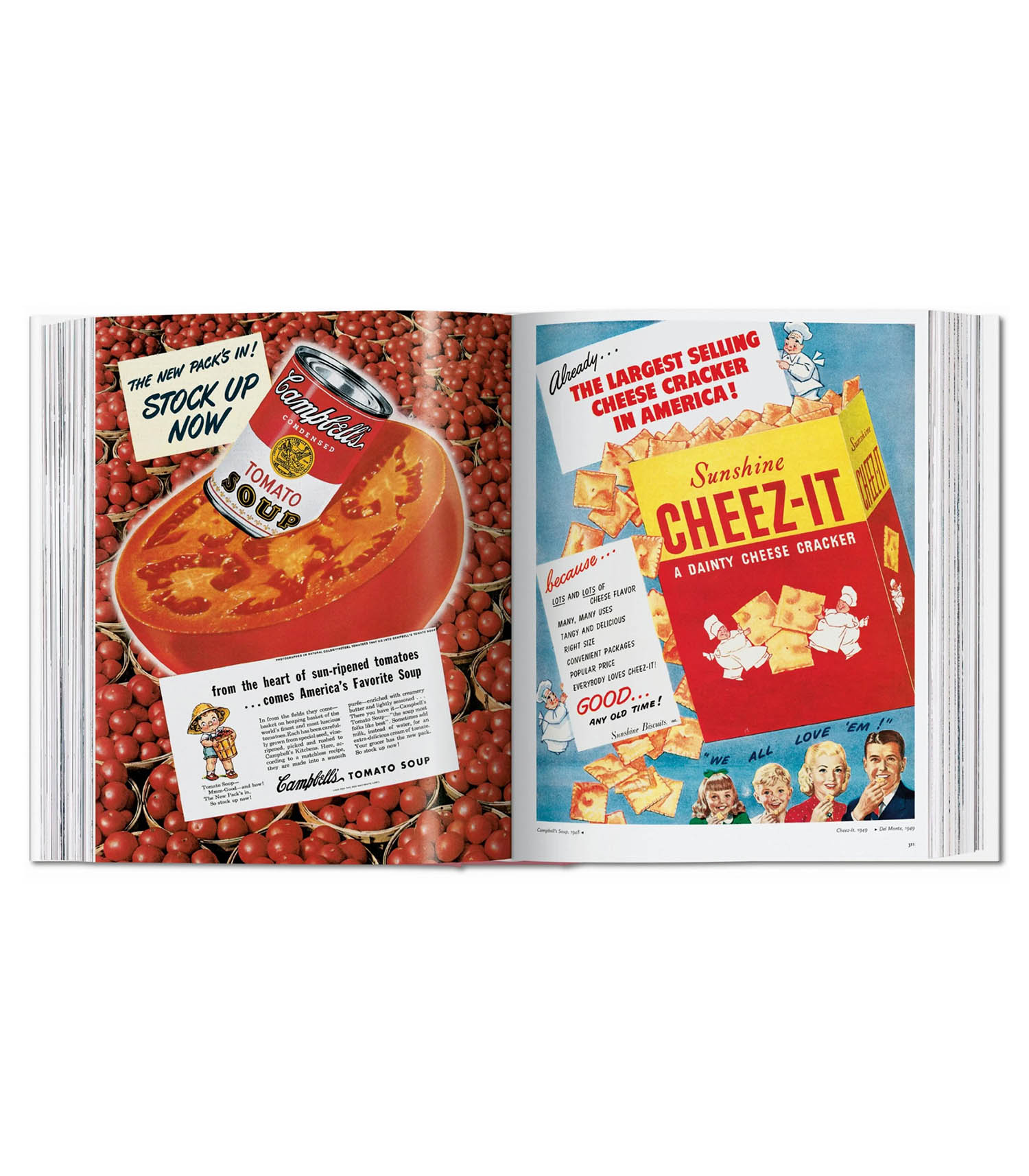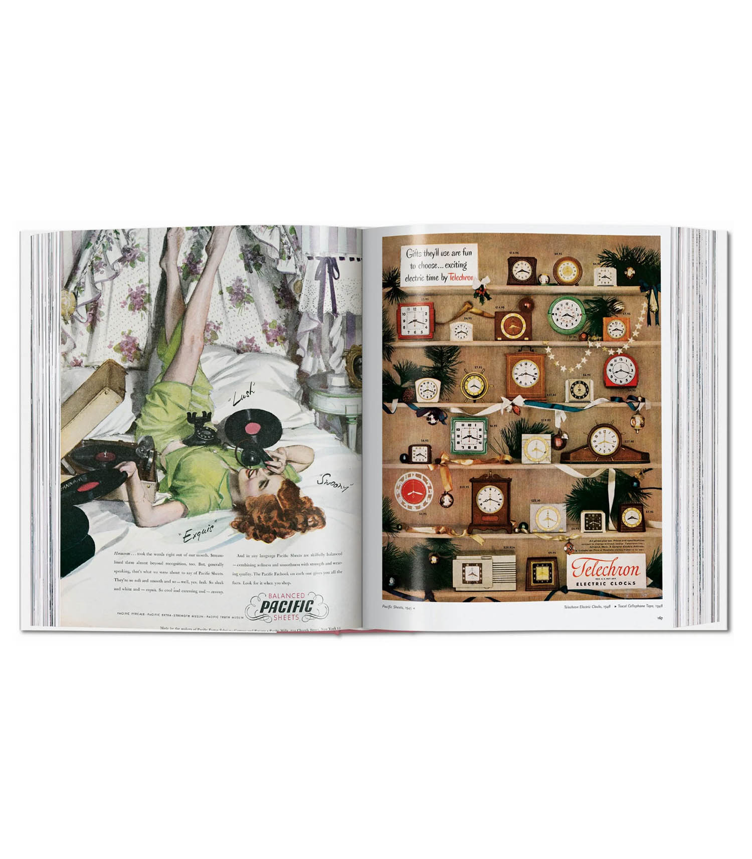 Livre All-American Ads of the 40s aux éditions Taschen. La fascinante compilation de publicités que renferme cet ouvrage nous plonge dans la nostalgie d'une époque révolue. Ces campagnes publicitaires omniprésentes ont imprégné une époque de consumérisme en plein essor, touchant tous les aspects de la vie, de la mode à l'alimentation, en passant par les produits de beauté et les boissons.
