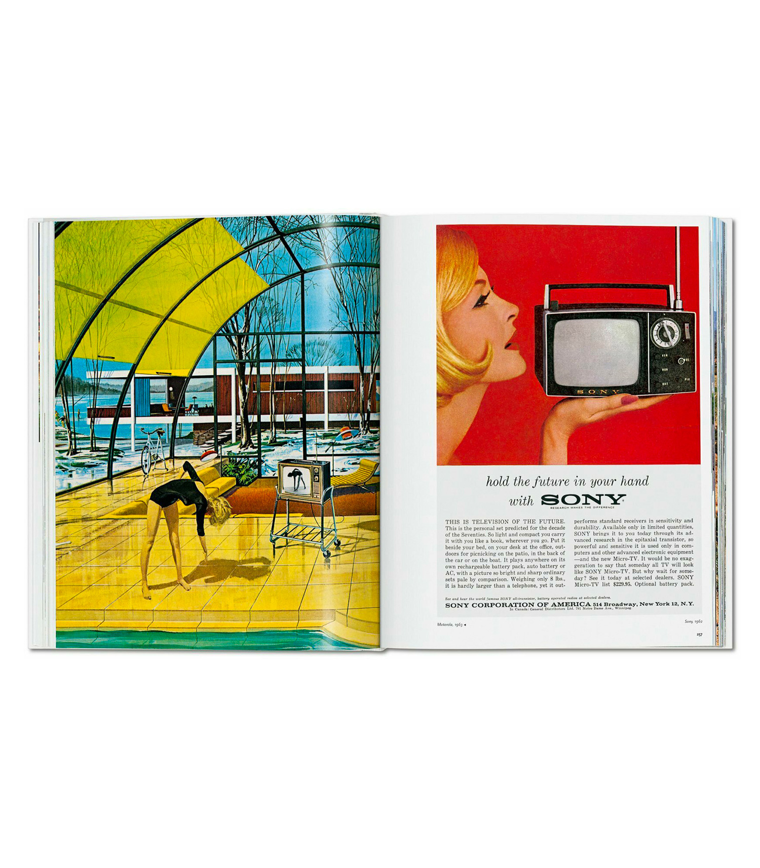 Livre All-American Ads of the 60s aux éditions Taschen, un ouvrage qui nous propulse dans l'Amérique des années 60. Une Amérique qui exhale à cette époque l'optimisme et la prospérité du peuple de l'époque. Les publicitaires encouragent une consommation de masse et ventent une innovation rapide, sans bousculer les habitudes des américains conservateurs.