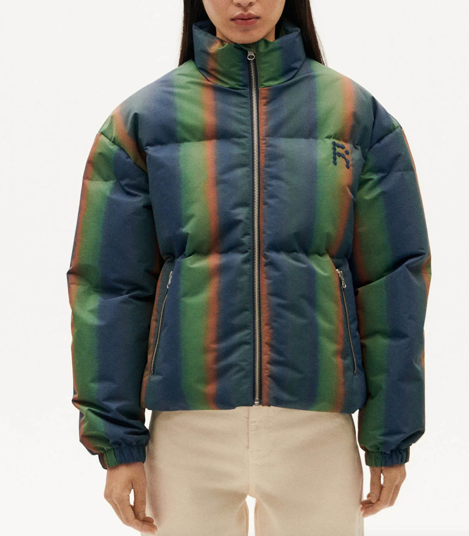 Doudoune Swamp Gemma de la marque Thinking Mu. Cette doudoune multicolore au design original est parfaite pour apporter une touche de couleur et de gaieté à vos tenues hivernales. Idéale pour se démarquer, elle transforme instantanément un look basique en une tenue audacieuse. Associez-la à des pièces simples pour éviter de surcharger la silhouette, laissant ainsi toute la place à la doudoune pour briller. C’est la pièce incontournable pour illuminer vos journées d'hiver avec originalité.