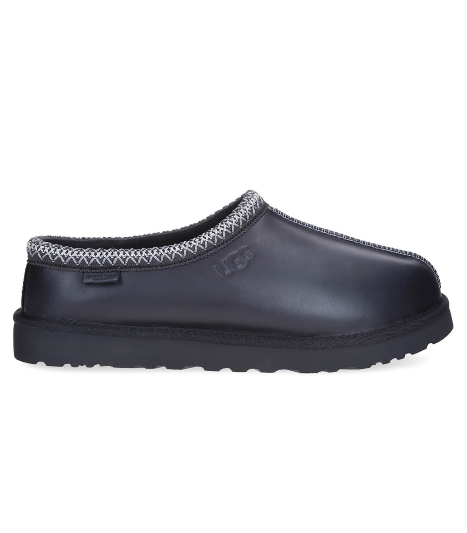 Chaussons homme Tasman Regen en cuir Noir de la marque UGG. La Tasman LTHR Regen réinvente le modèle iconique avec une touche de luxe et un engagement environnemental fort. Chaque paire est unique grâce aux variations naturelles du cuir, devenant encore plus belle avec le temps. Adaptée pour l'intérieur comme pour l'extérieur, la Tasman LTHR Regen est indispensable pour cet hiver.