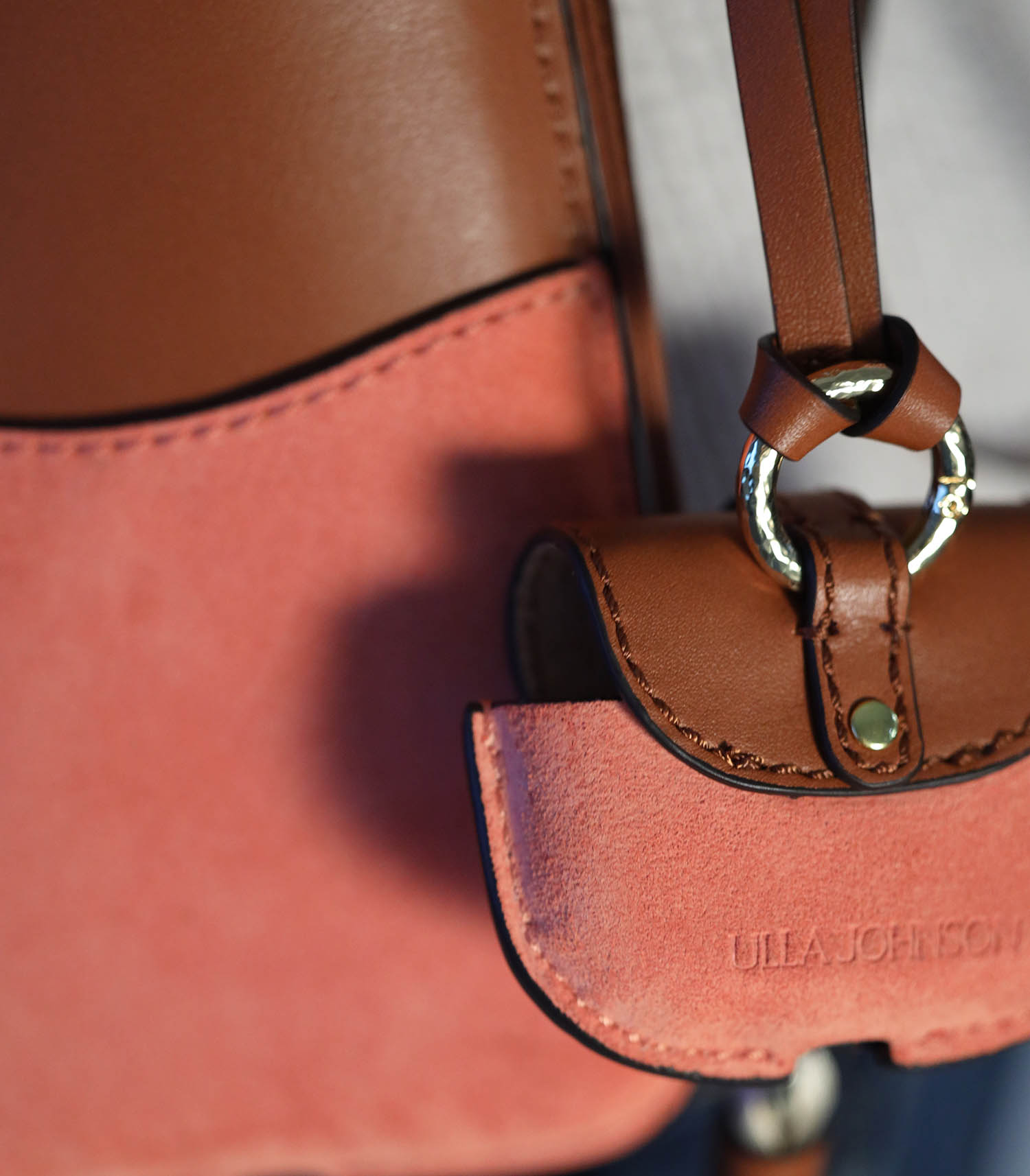 Protégez vos paires d'AirPods Pro avec l'Étui pour écouteurs Alvie d'Ulla Johnson. Composé d'une combinaison de cuir lisse et de cuir suédé, l'étui est attaché à une fine lanière en cuir lisse noué sur un anneau. Possibilité de clipser l'étui à l'intérieur de son sac.