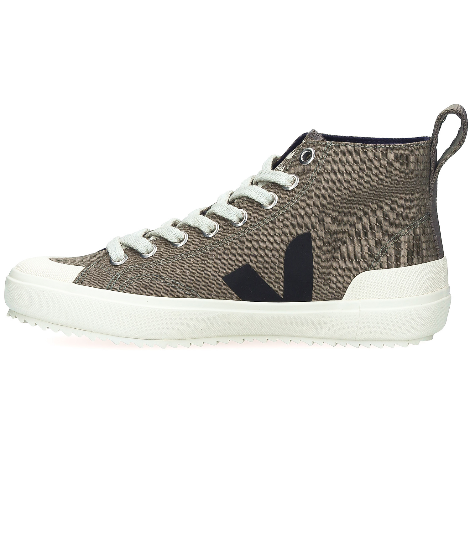 Nouvelles venues dans les collections Veja, ces baskets Nova HL Ripstop Kaki Black, une paire de basket utilisant une technologie Ripstop qui limite les déchirures du tissus. Sa toile cadrillée lui donne un look très workwear, de surcroit avec la petite étiquette cousue et la semelle crantée toutes deux d'inspiration militaire.