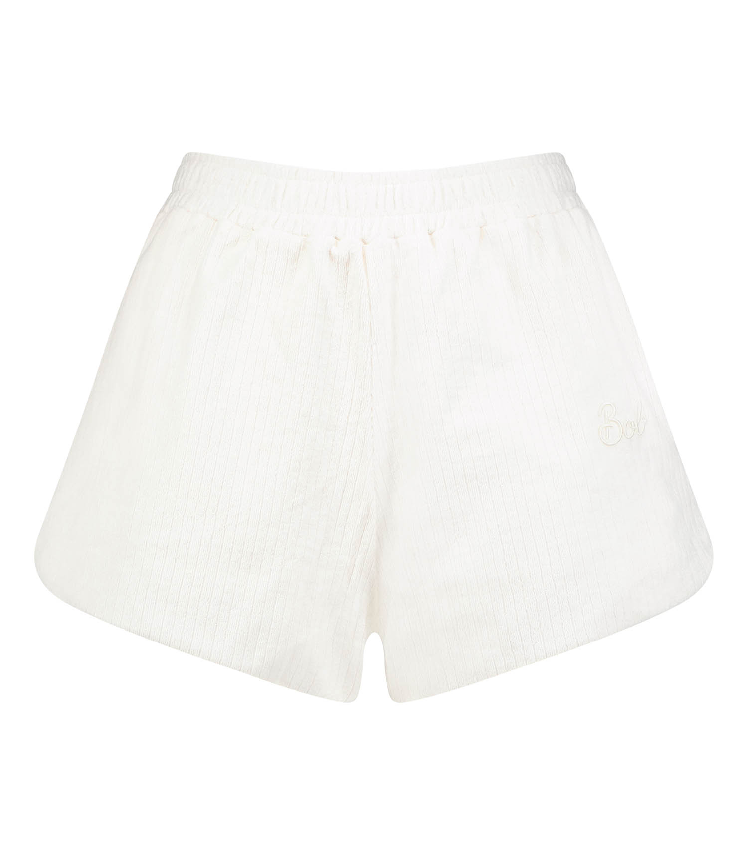 Short Salvador Cream de la marque Welcome Bob, en tissu éponge de coloris crème doux et frais pour les beaux jours. Fines rayures ancrées dans le tissu dans un esprit sportswear. Ceinture élastiquée pour plus de confort.