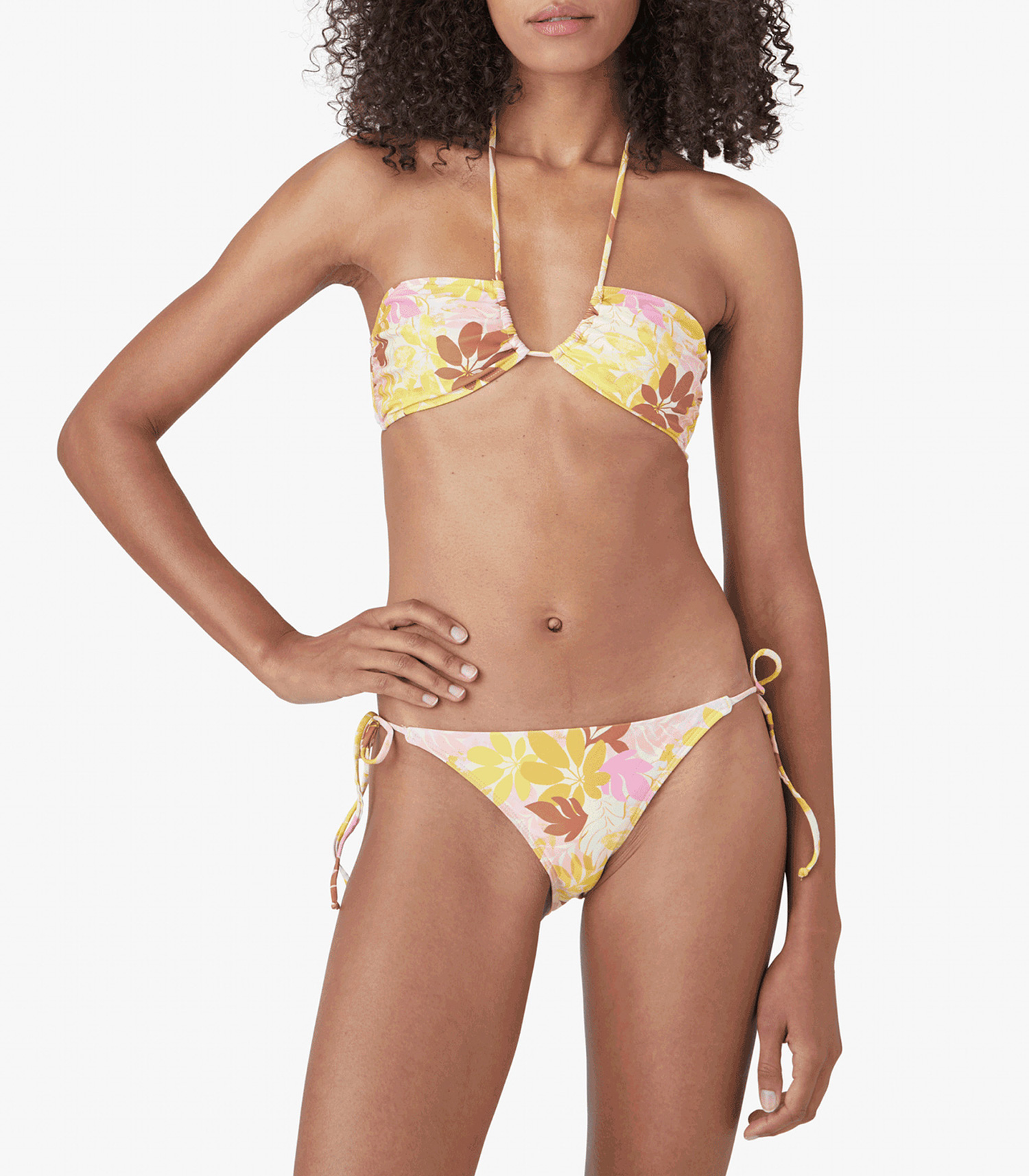 On craque pour l'imprimé irrésistiblement rétro du bas de maillot de bain Sima Pink Lemonade Xirena, à l'imprimé végétal à teintes acidulées, le tout dans une coupe légèrement échancrée, nouée des deux côtés de la taille pour un résultat plein de charme.