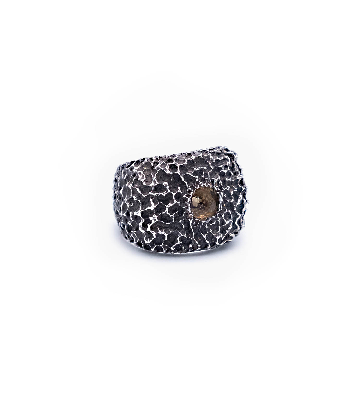Bague 6x6 imaginée par le joaillier Ylang Ravel pour sa maison éponyme. Une chevalière unisexe au design rond qui dévoile en son centre un quartz fumé serti, mêlant la brutalité de la matière à la délicatesse de la pierre précieuse.